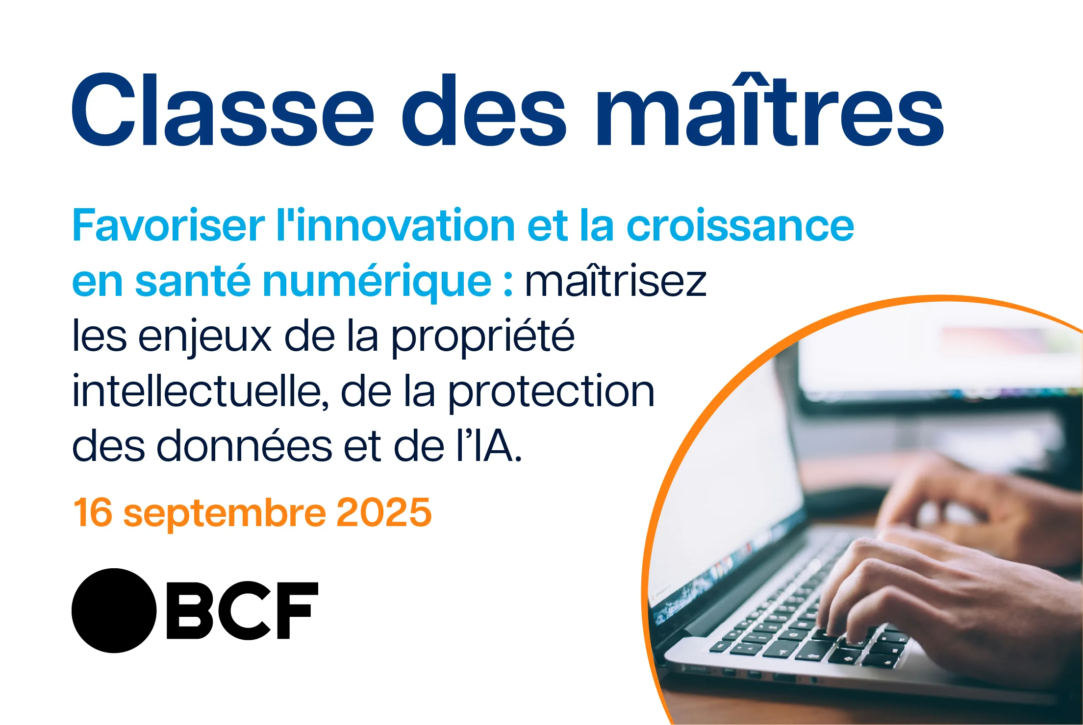 BCF présente la classe des maîtres « Favoriser l’innovation et la croissance en santé numérique : maîtrisez les enjeux de la propriété intellectuelle, de la protection des données et de l’IA »